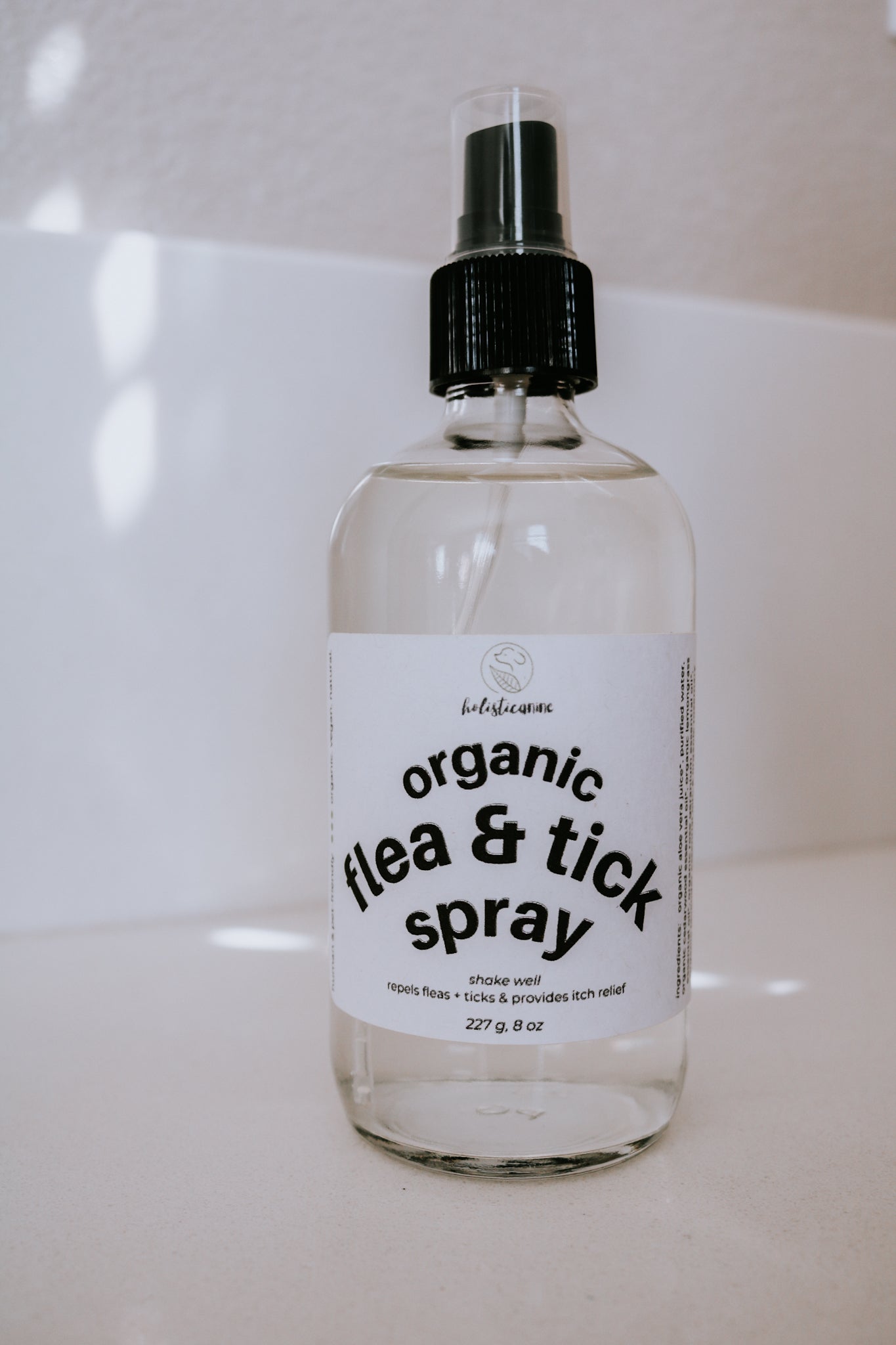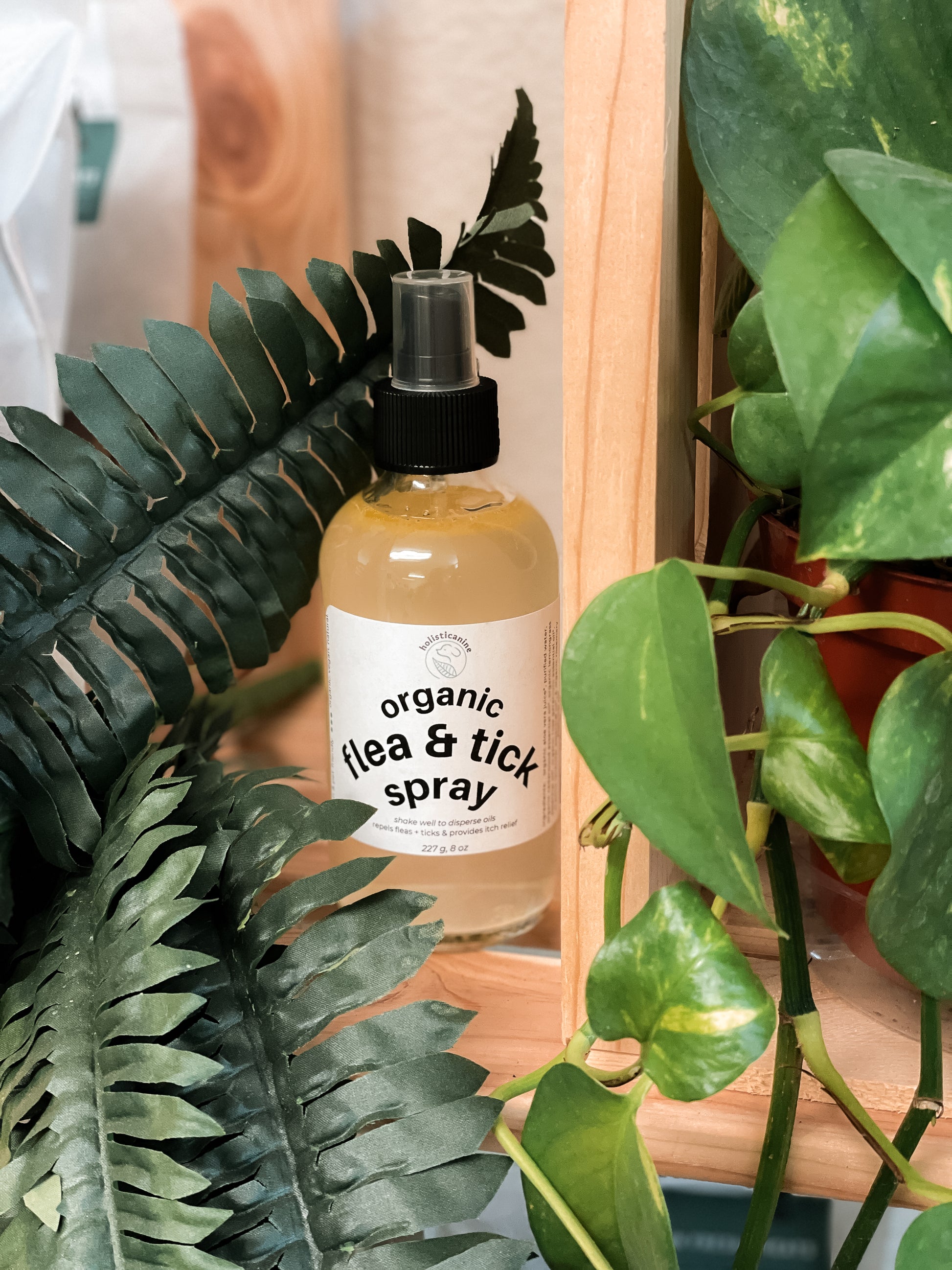 our very own organic flea and tick spray! made of only natural and organic ingredients and essential oils.