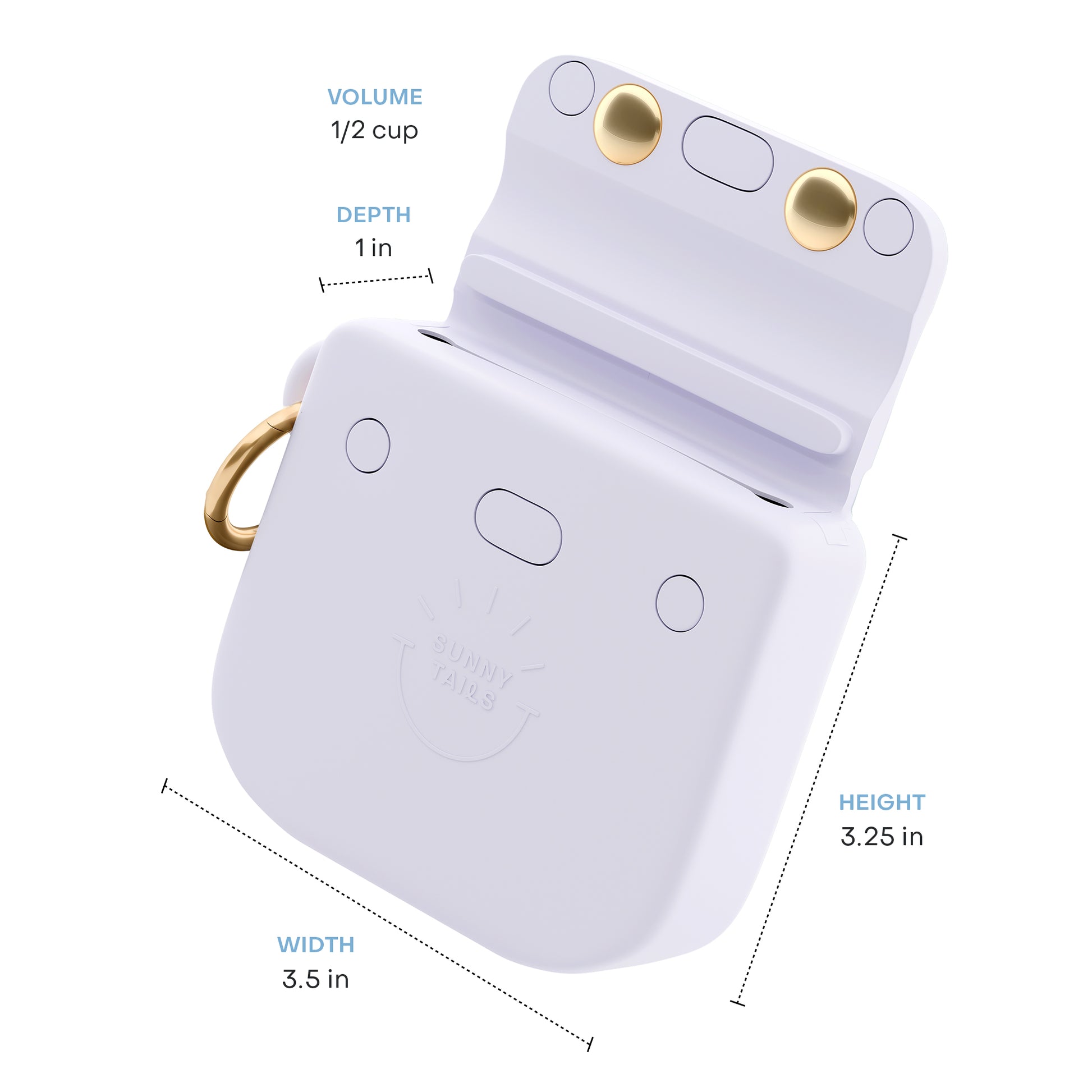 Designed for the ultimate mess-free dog rewarding experience! Sunny Tail's patent-pending food grade silicone treat pouches are secured with 4 hidden magnets and 2 metal snaps to attach onto your leash to make carrying treats easy and hands free.