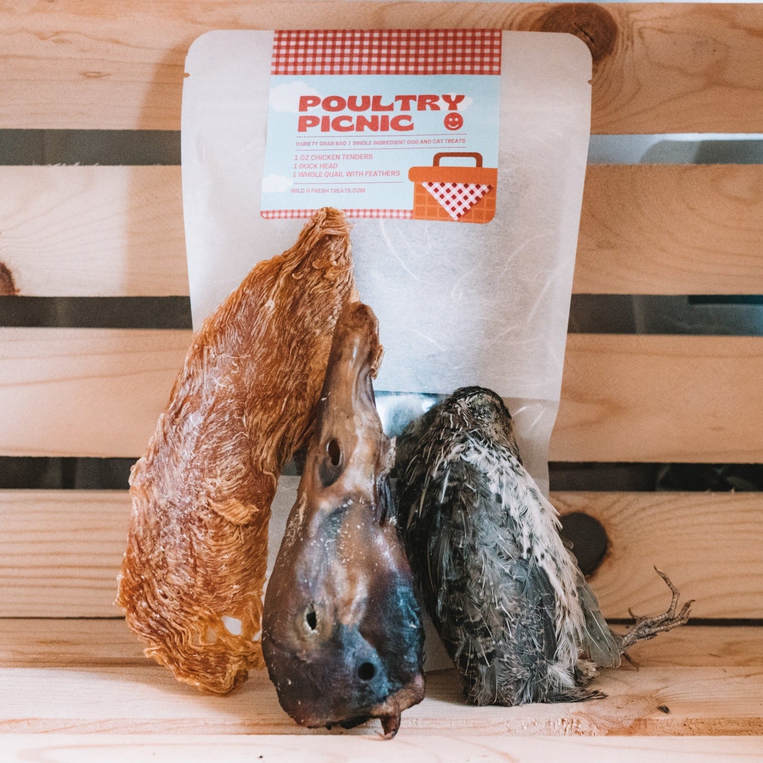Introducing our Poultry Picnic Grab Bag – a delightful assortment of poultry treats that will make mealtime a picnic for your furry friend! This carefully curated variety pack offers a mix of flavors, textures, and entertainment to keep your dog's tail wagging with joy. Made with natural ingredients and free from artificial additives, this grab bag is perfect for adding excitement to mealtime.